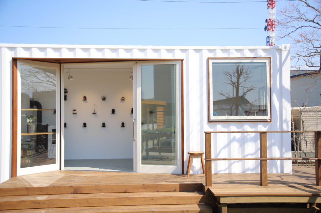ショップにある、白いコンテナハウスをお貸ししています。