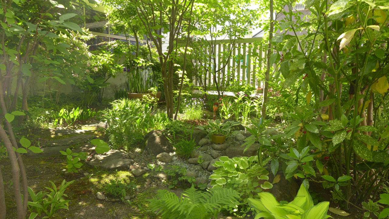 木漏れ日が美しい、雑木の庭。